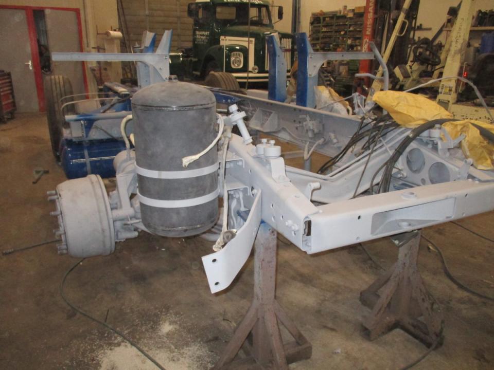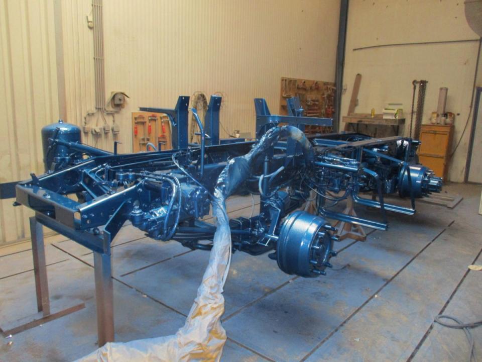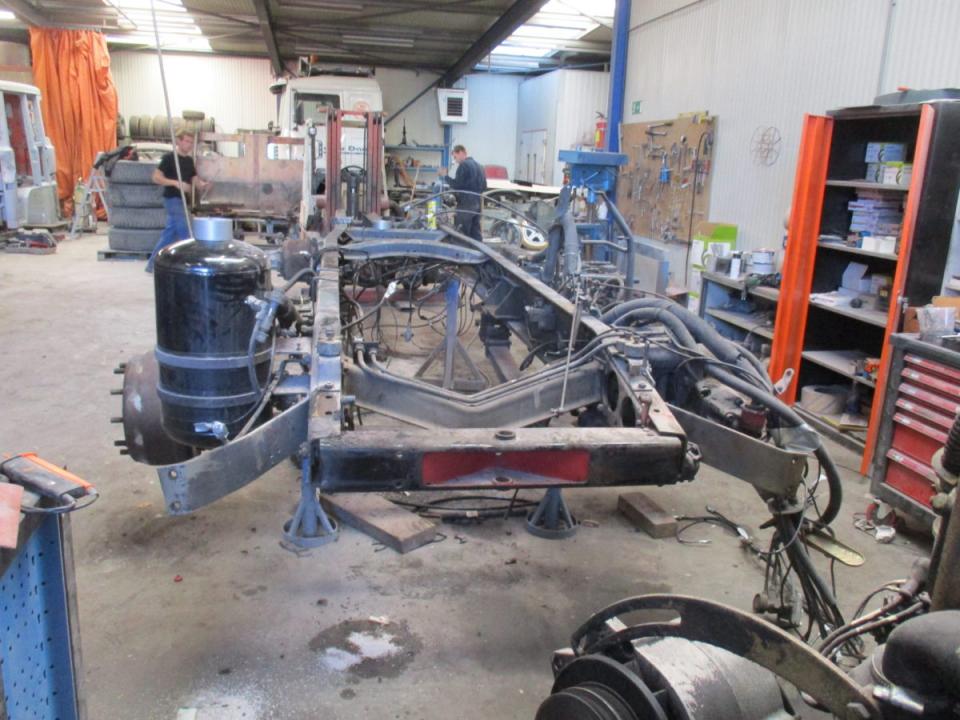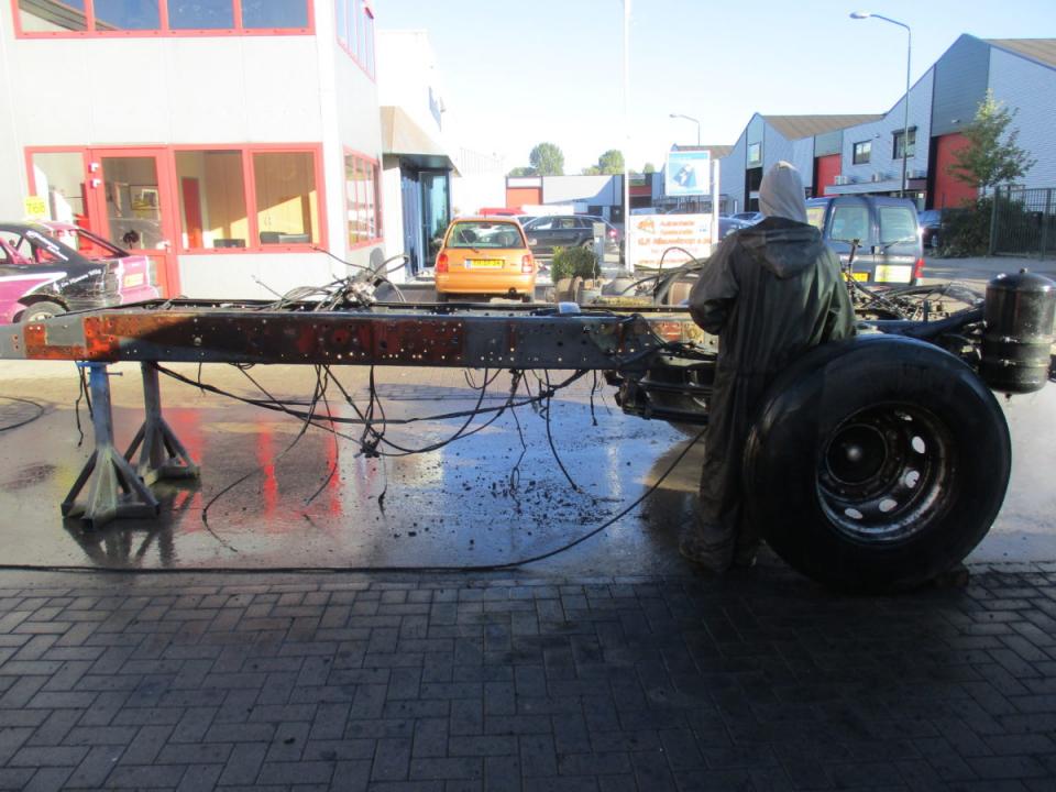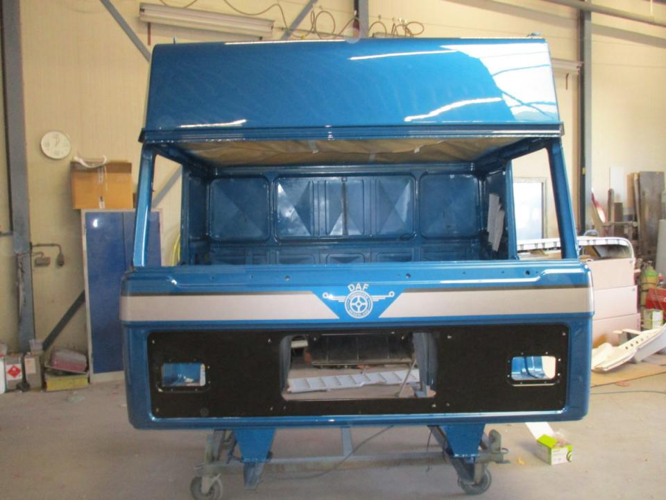 Deze Daf wordt door ons geheel gedemonteerd, de cabine gestraald, waar nodig nieuw plaatwerk ingelast, stak gemaakt en gespoten. Het chassis word geheel nagezien voorzien van een hydro