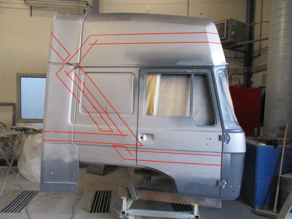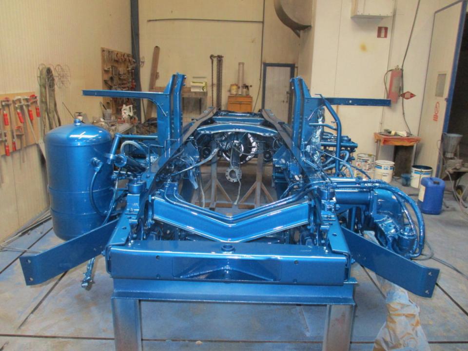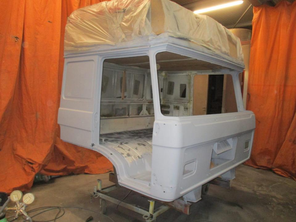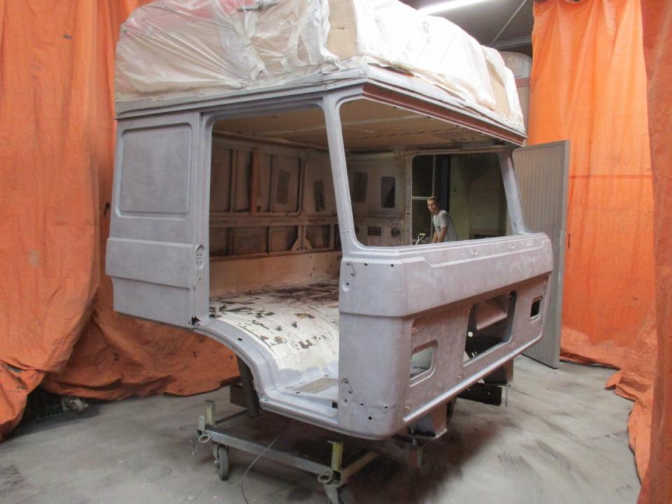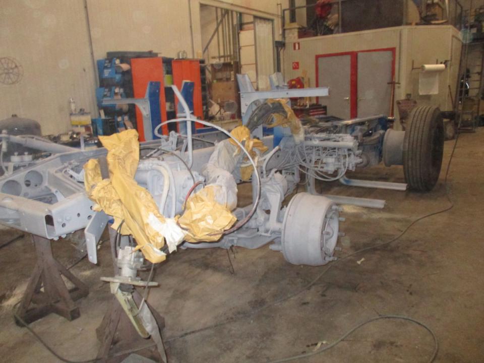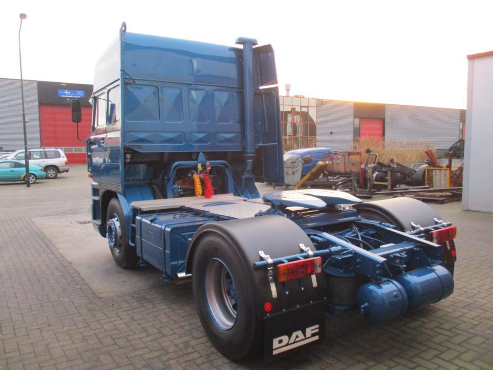 Deze Daf wordt door ons geheel gedemonteerd, de cabine gestraald, waar nodig nieuw plaatwerk ingelast, stak gemaakt en gespoten. Het chassis word geheel nagezien voorzien van een hydro